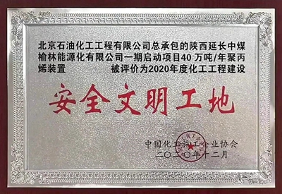 近日,從中國化工施工企業(yè)協(xié)會(huì)傳來喜訊,由公司總承包的榆能化一期啟動(dòng)項(xiàng)目填平補(bǔ)齊工程甲醇聯(lián)合裝置2線和40萬噸/年聚丙烯裝置被授予“2020年度化工工程建設(shè)安全文明工地”稱號(hào)。