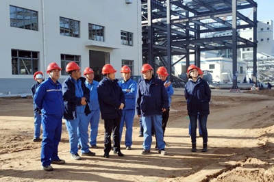 近日,北京石油化工工程有限公司黨委書記、董事長許緘濤到榆神能化50萬噸/年煤基乙醇項目現場檢查指導工作,并代表公司看望了堅守一線崗位的干部職工,公司副總經理、乙醇項目主任鄭薇,公司總經理助理、乙醇項目副主任田平漢等人陪同檢查。