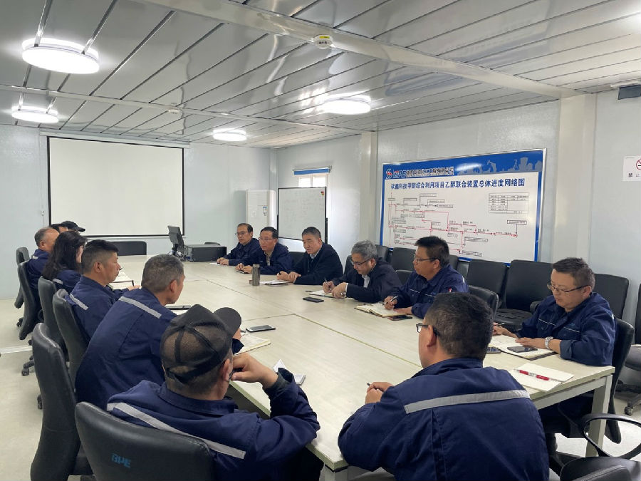 近日,北京石油化工工程有限公司(簡稱:北油工程)黨委書記、董事長許緘濤到公司EPC總承包的安徽碳鑫科技有限公司(簡稱:碳鑫科技)甲醇綜合利用項目乙醇聯(lián)合裝置調研指導工作,公司副總經(jīng)理、總工程師曹堅,項目部主要領導陪同調研。