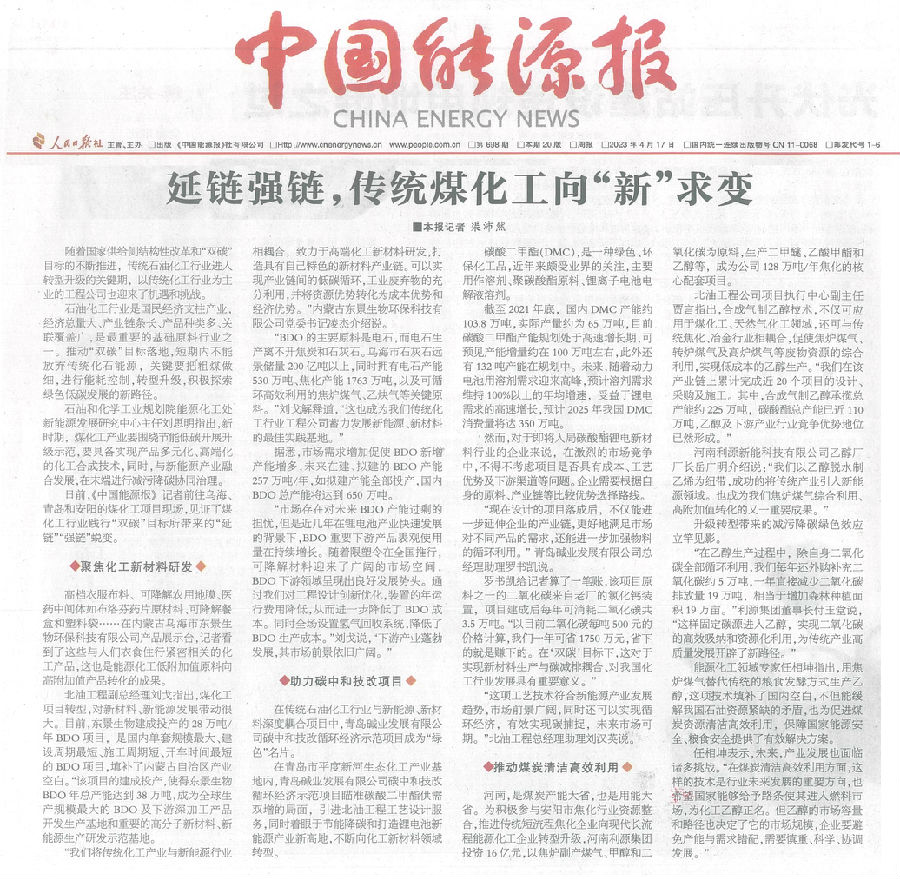 北油工程:延鏈強鏈,傳統(tǒng)煤化工向“新”求變