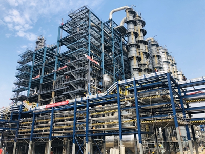 "三查四定"工作是確保聯動試車、投料試車成功的有效手段。項目組積極配合業主、各參建方對項目進行查漏補缺,分專業進行全面檢查,對裝置開車前的準備工作進行了充分的討論。項目投產后將進一步豐富業主產品線、提高技術研發能力,拓展鋰電池電解液等下游市場。