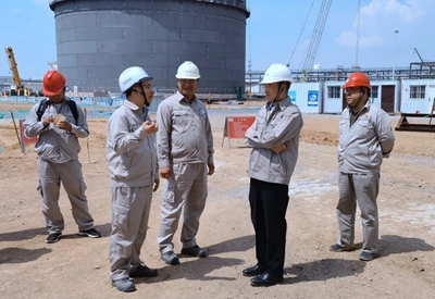 6月20日,北京石油化工工程有限公司黨委書記、董事長許緘濤到公司EPC總承包的延長石油靖邊天然氣儲氣調(diào)峰及配套LNG項目調(diào)研。強(qiáng)調(diào)要進(jìn)一步加強(qiáng)安全生產(chǎn)工作,確保高質(zhì)量按時完成各項目標(biāo)節(jié)點,為項目順利驗收打下堅實基礎(chǔ)。公司總經(jīng)理助理、安全總監(jiān)楊礫陪同調(diào)研。