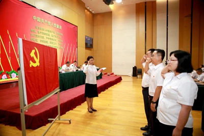 大會在莊嚴的國歌聲中拉開帷幕,全體參會干部、職工著裝整齊、昂首肅立。面對鮮紅的黨旗,預備黨員在公司黨委副書記、總經理田偉同志的領誓下,莊嚴宣誓,擲地有聲地表達了對黨的無限忠誠和崇高敬意。