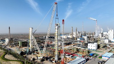 4月22日,由北京石油化工工程有限公司EPC總承包的陜西延長(zhǎng)石油榆林凱越煤化有限責(zé)任公司50萬(wàn)噸/年甲醇制乙醇項(xiàng)目首臺(tái)塔器設(shè)備——脫脂塔順利完成吊裝作業(yè)并精準(zhǔn)就位。